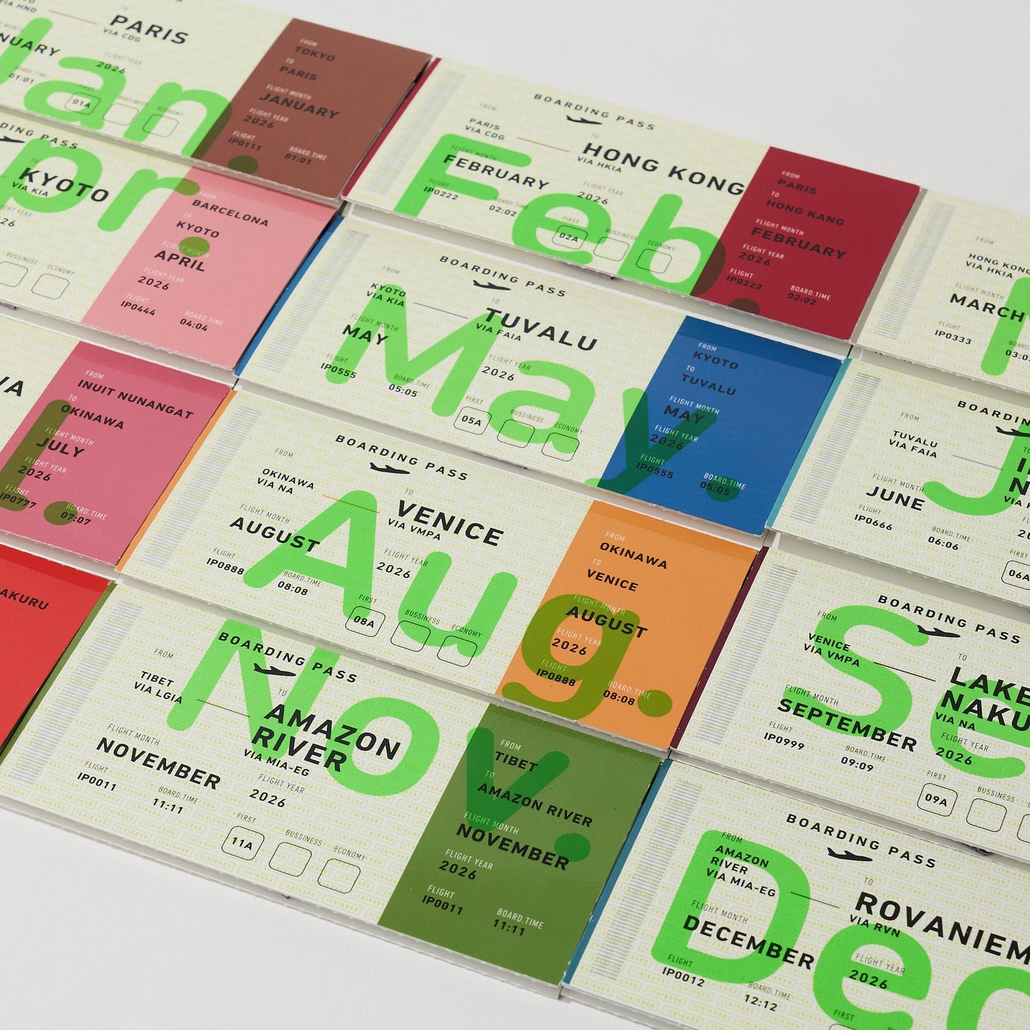 The ICHIKUDO NEXT JOURNEY CALENDAR 2026 is available in two editions—World and Japan—each designed to bring a sense of discovery and joy to your desk. Every month introduces a new destination, with ticket-style outer pages and playful pop-up illustrations inside. Packaged in a suitcase-style box, this calendar captures the excitement of travel and the beauty of exploration, whether across the globe or throughout Japan’s four seasons. Finished with elegant screen-foil processing, it is both a functional tool and a keepsake to treasure.