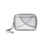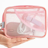 Stylish and functional accessory designed to keep your essentials organized and easily accessible. Crafted with a transparent mesh material, this pouch allows for quick identification of contents, making it ideal for daily use.