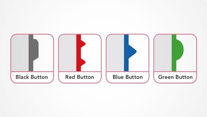 Selectable by feel: Each ink button has a distinct shape, to let you to choose colors by touch without needing to glance.