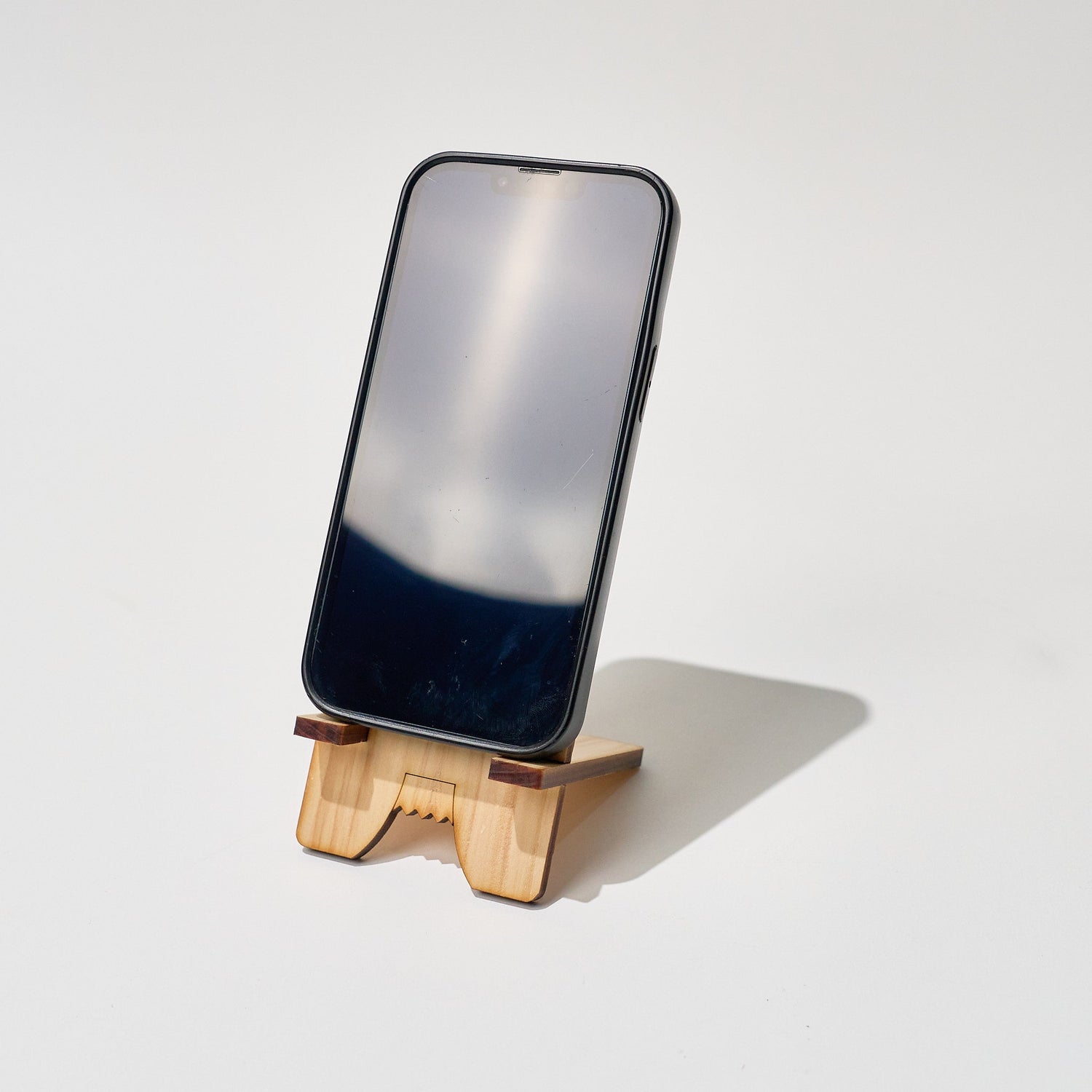 A pair of minimalist, handcrafted wooden smartphone stands that blend natural materials with thoughtful design — perfect for desks, nightstands, or anywhere you want to prop up your phone in a stable, stylish way.