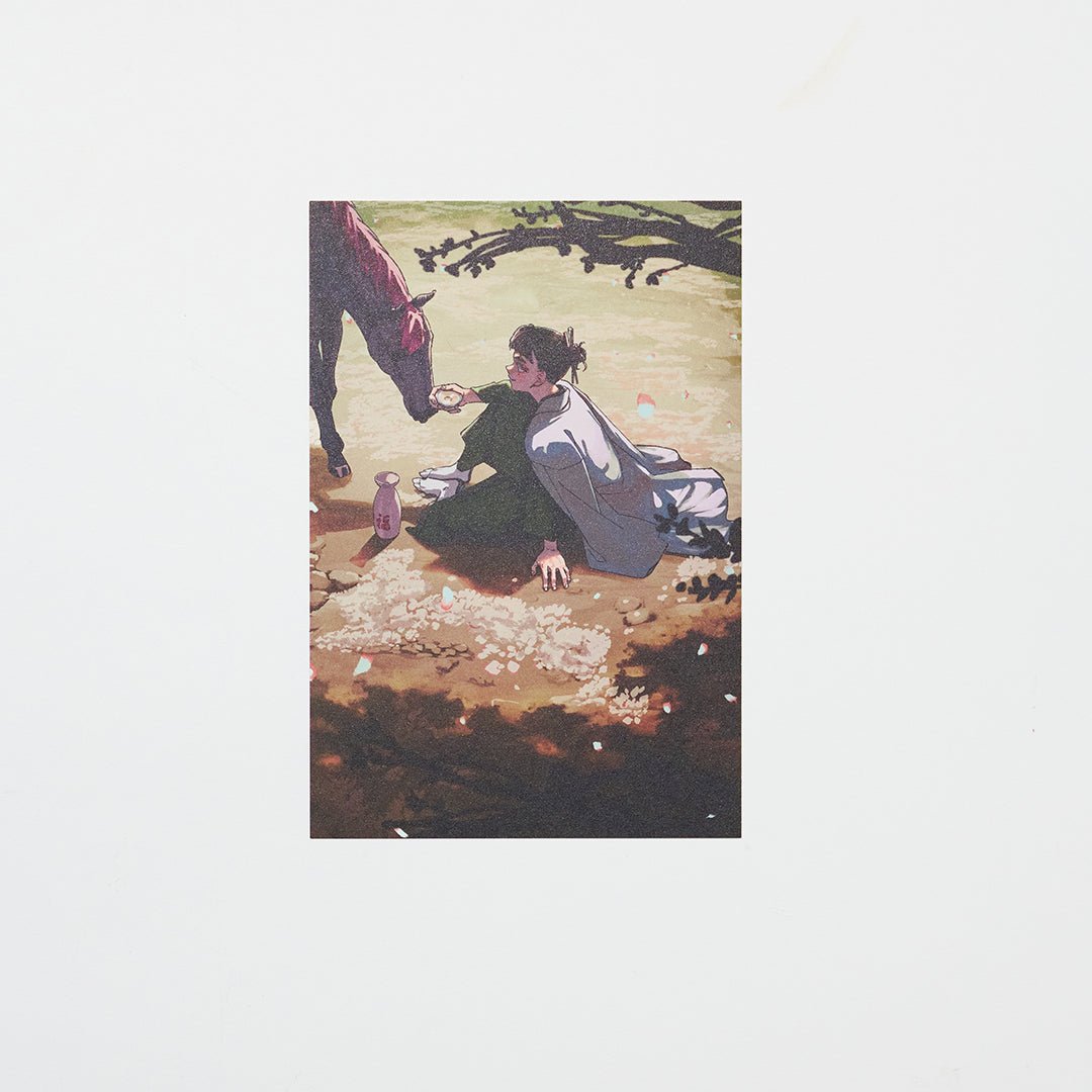 Printed on Washi Hakōshi paper, known in Japan for its micro-embossed surface that captures the soft glow of natural light. The paper is widely used for fine stationery, art reproductions, and gift packaging because it combines a refined texture with lasting quality.