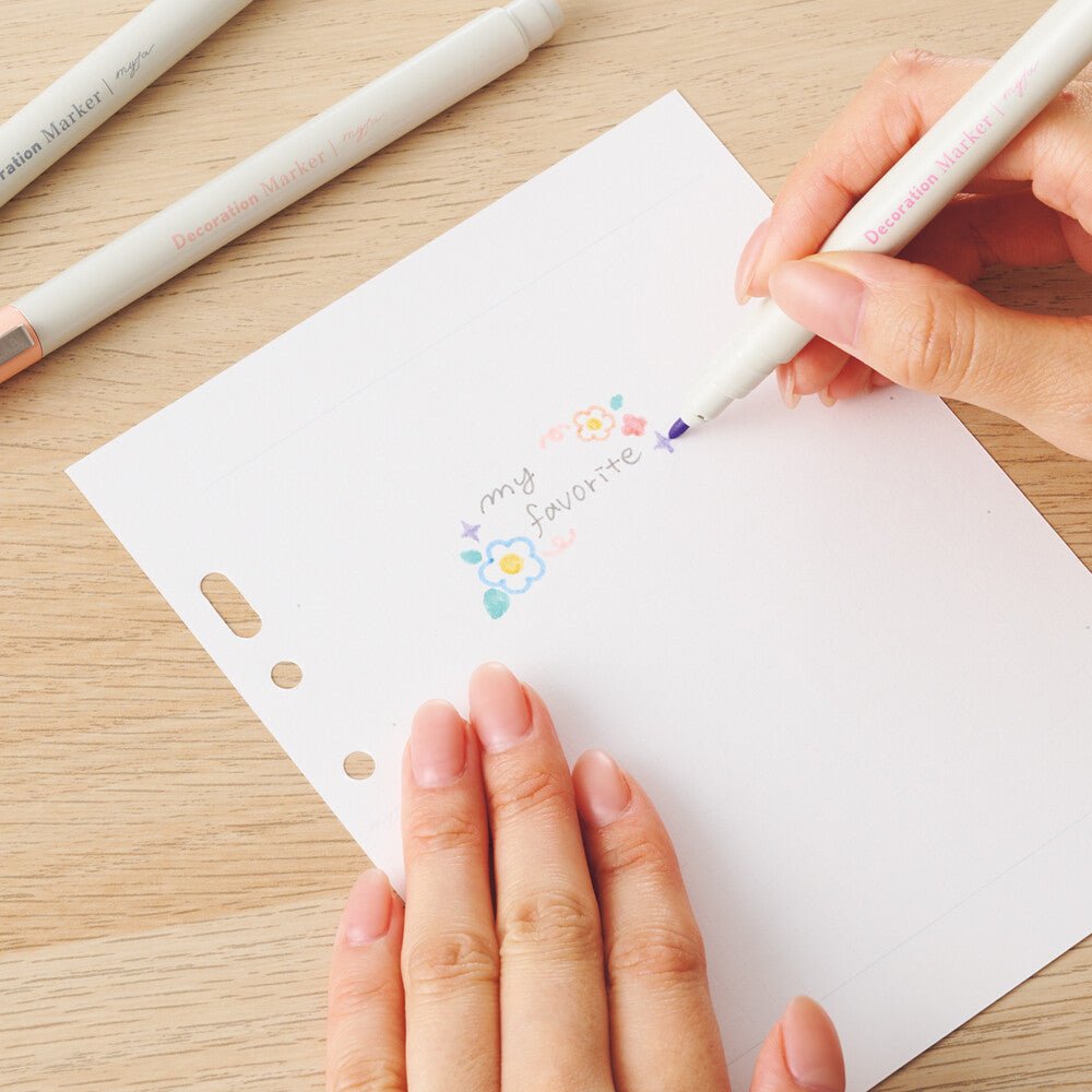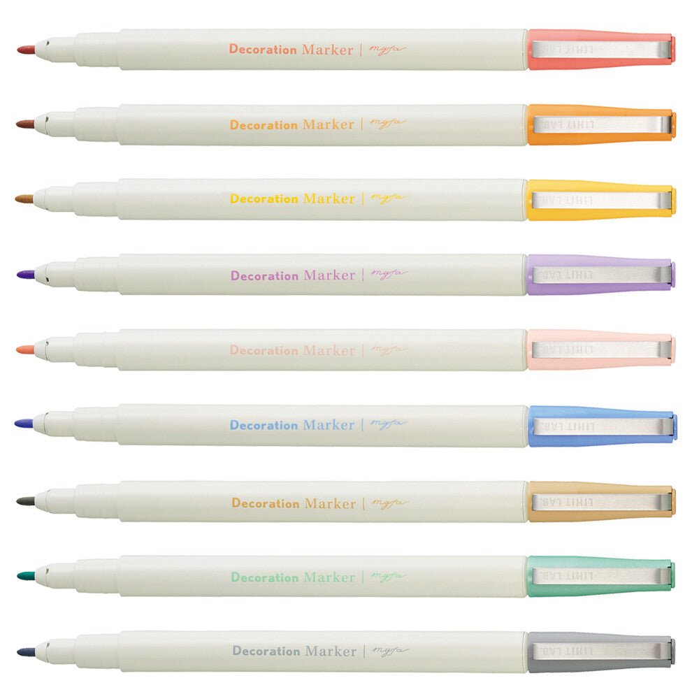 The myfa Decoration Marker by LIHIT LAB features water-based pigment ink with excellent water resistance that does not bleed easily and can be layered for decoration and line drawing. The 1.0-1.5mm line width makes it easy to color fine areas and write characters.
