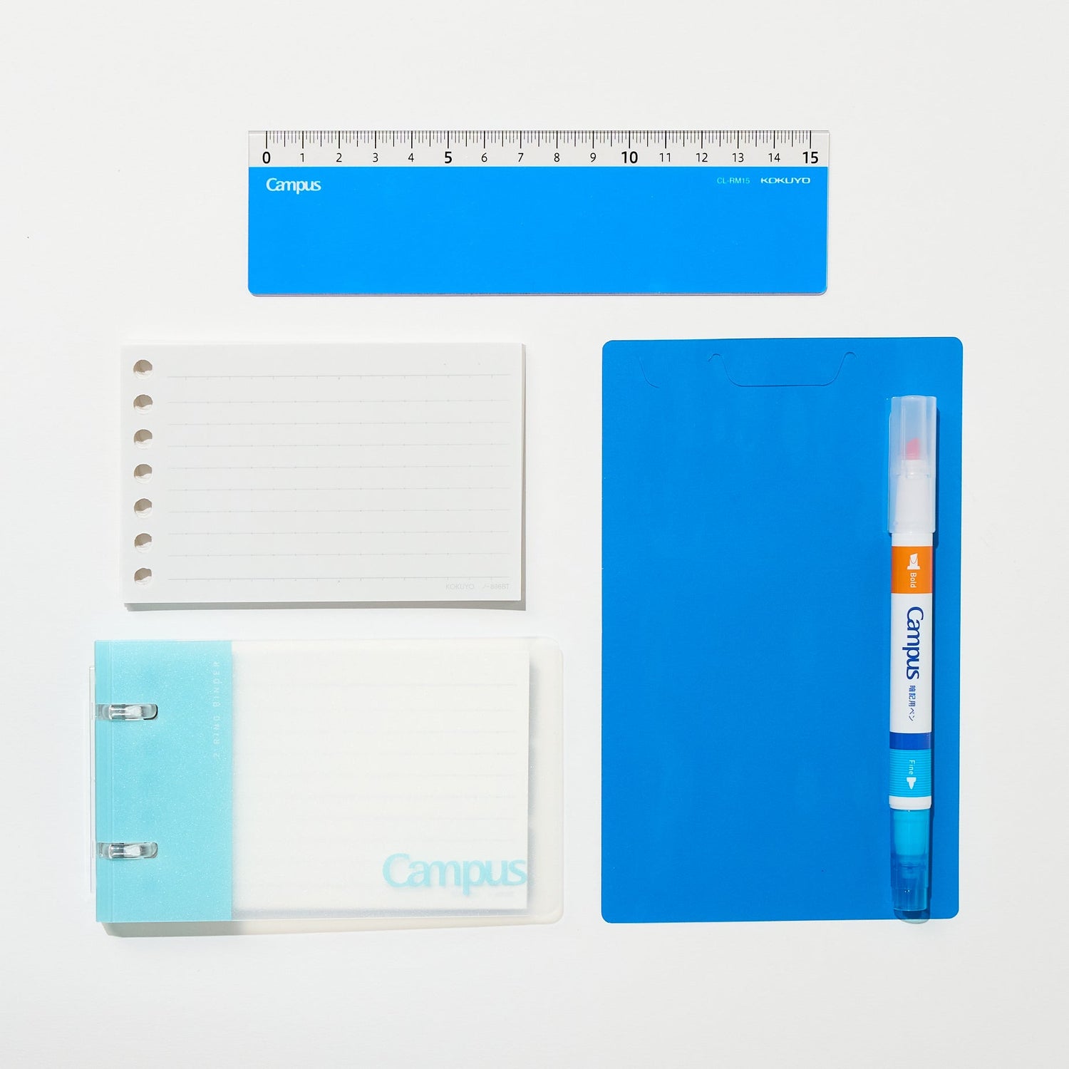The Kokuyo Choco Recipe bundle makes studying small and sweet—“choco” means small in Japanese. Designed for portable and effective review, this set combines a compact Campus Binder Notebook, mini loose-leaf sheets, a focus ruler, and a memory support pen. Capture key points in bite-sized notes and revisit them anywhere—on the train, between classes, or right before a test—for simple, efficient learning.