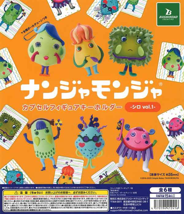 This gacha capsule collection features six characters from the popular Japanese memory card game Nanja Monja (or "Toddles-Bobbles" in English). Each figure comes with a ball chain.