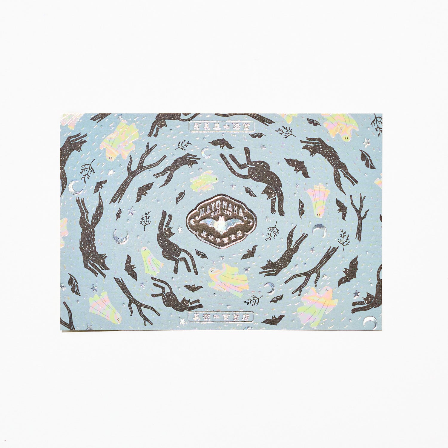 A foil-stamped postcard created through a collaboration between illustrator ob1toy (オビワン) and Kyoto-based foil-stamping brand ROKKAKU. Part of the beloved Retro Postal series, this postcard features nostalgic illustrations enhanced with richly layered foil that shimmers beautifully as it catches the light.