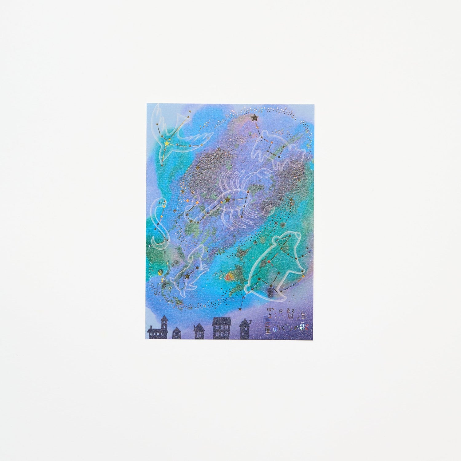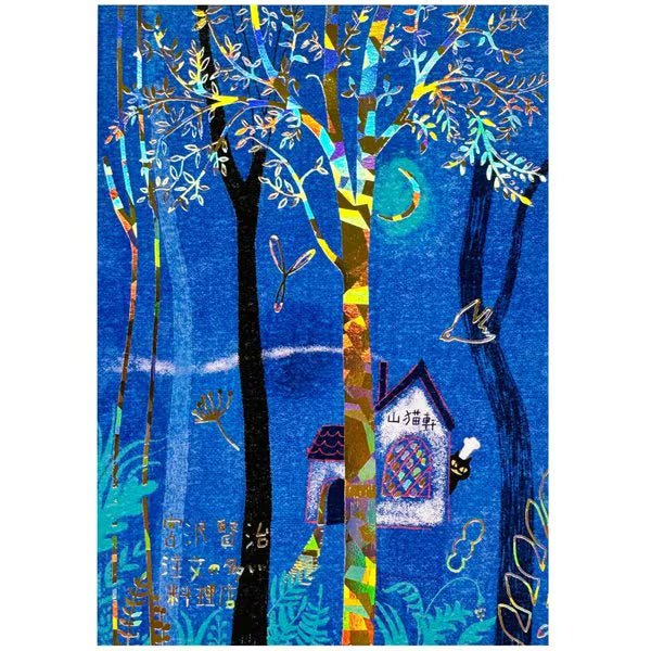 The Miyazawa Kenji Gentokan Kirapika Postcard by Seal Do features Shinzi Katoh illustrations of famous Miyazawa Kenji literary works adorned with gold hologram foil stamping, creating a shimmering, fantastical finish. Printed on luxurious matte FSC-certified Avion White paper, each postcard is individually packaged in an OPP bag.