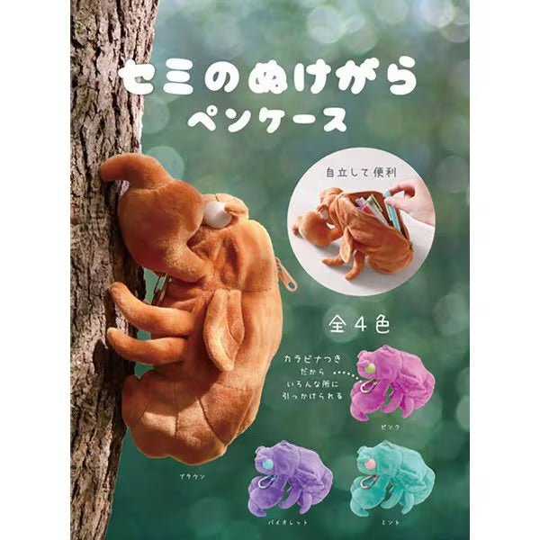 The Cicada Shell Pen Case by Sun-Star features a distinctive shell-shaped design that opens wide for easy access to pens and stationery supplies. This self-standing case includes a built-in carabiner for attaching to bags or backpacks.