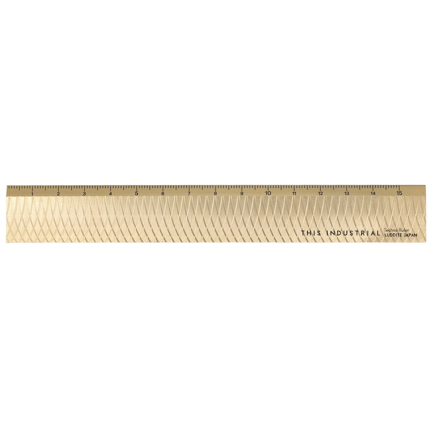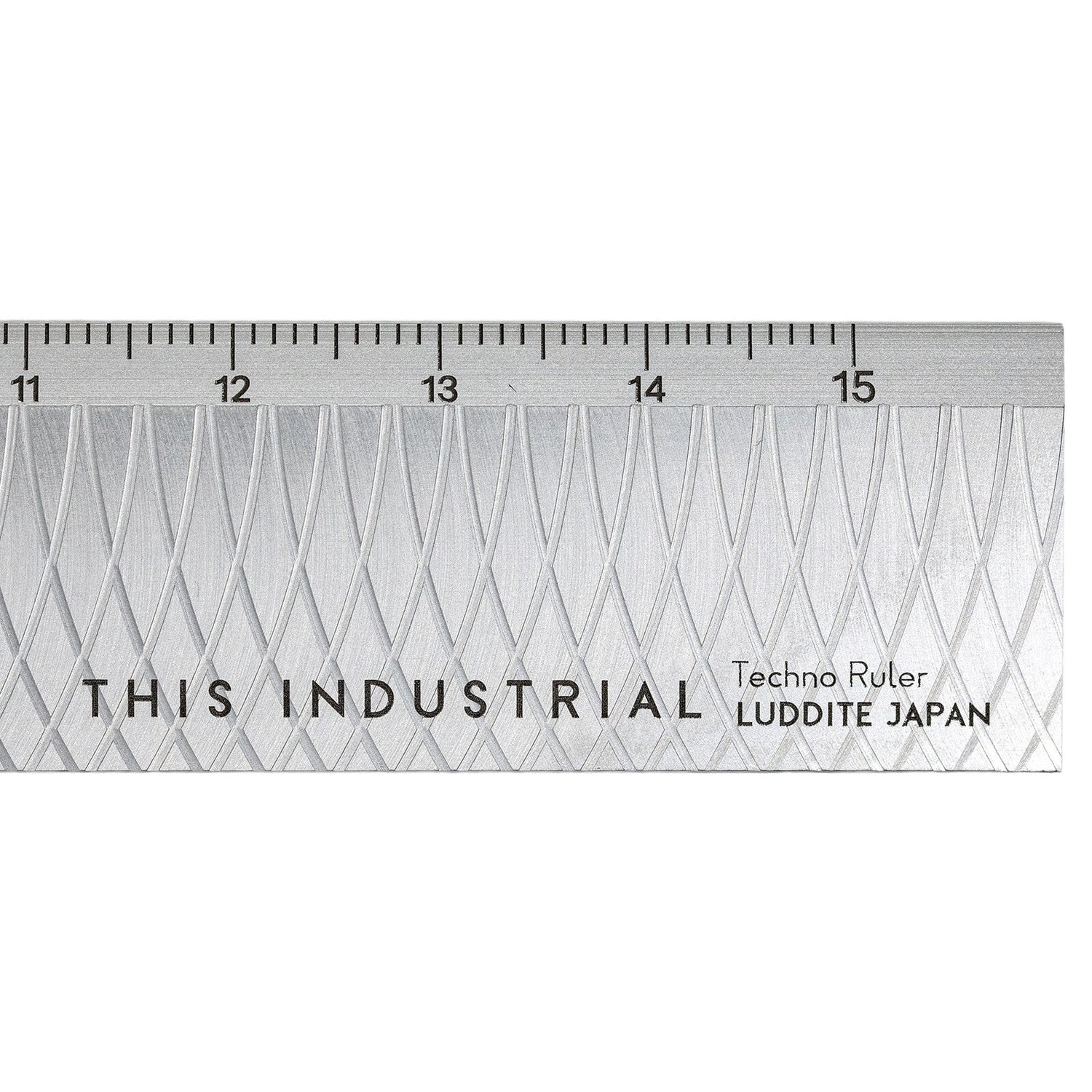 The THIS INDUSTRIAL Techno Ruler by Luddite transforms a measuring tool into a display product through precision cutting engraving. This 160mm aluminum ruler features a zero-start scale and a diamond-cut pattern engraved across the entire surface using milling techniques. The cutting processing creates a solid, heavy feel that combines artistic and industrial aesthetics.