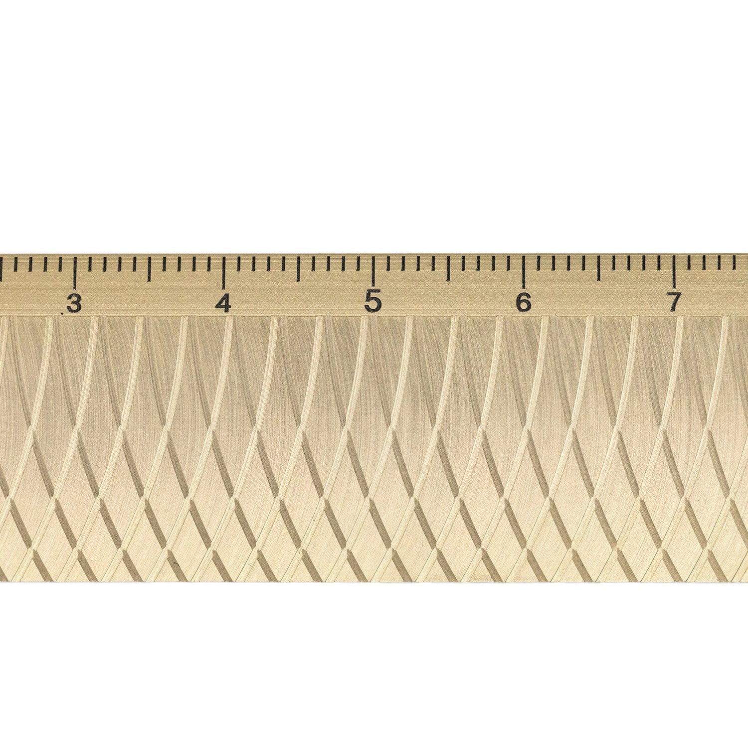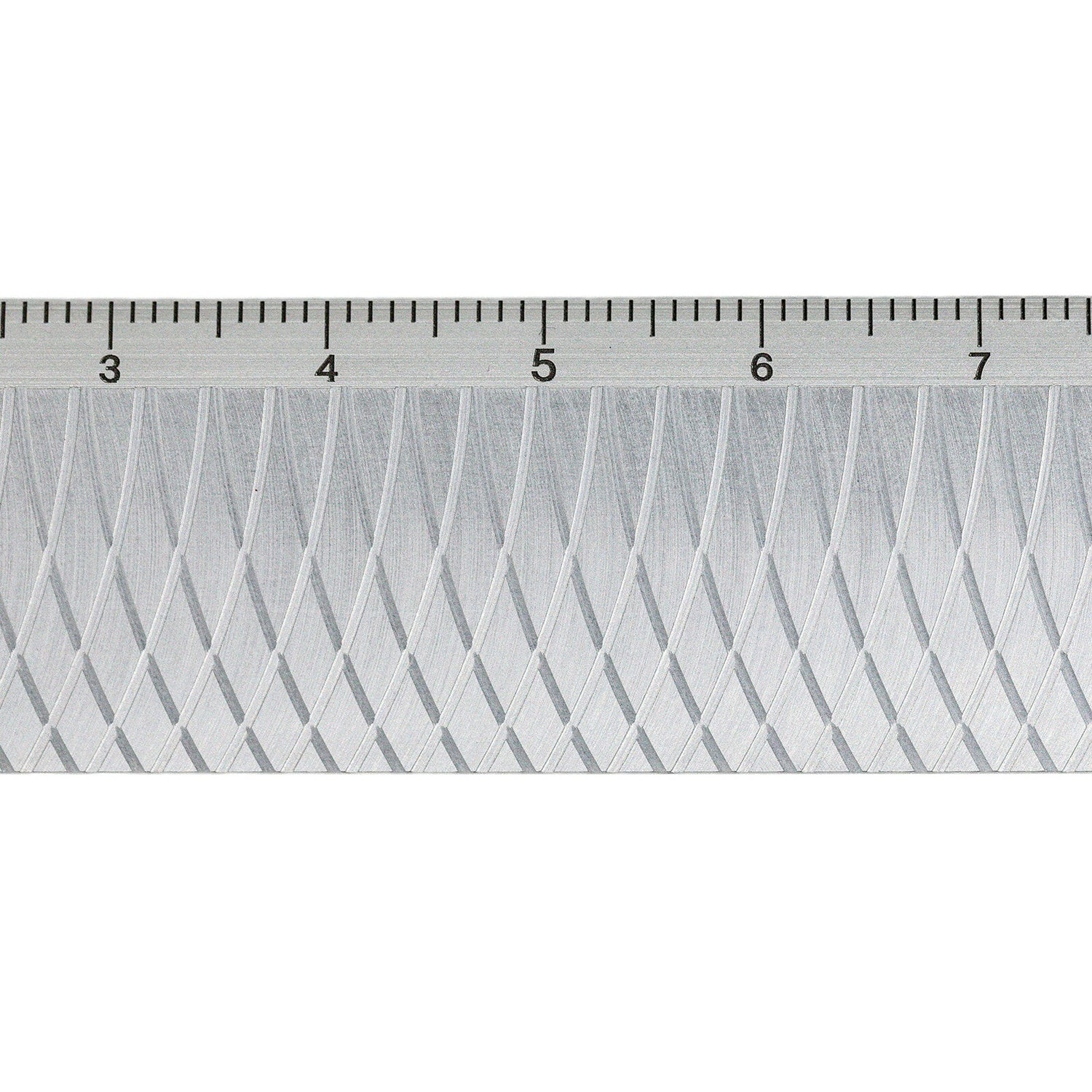 The diamond-cut pattern is created through milling (cutting engraving) rather than printing or etching, giving the ruler strong visual presence and tactile depth. Each color finish highlights the geometric pattern differently, making these rulers suitable for precise measurement and as desk accessories.