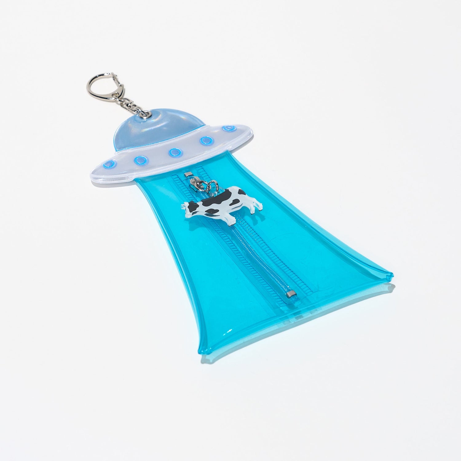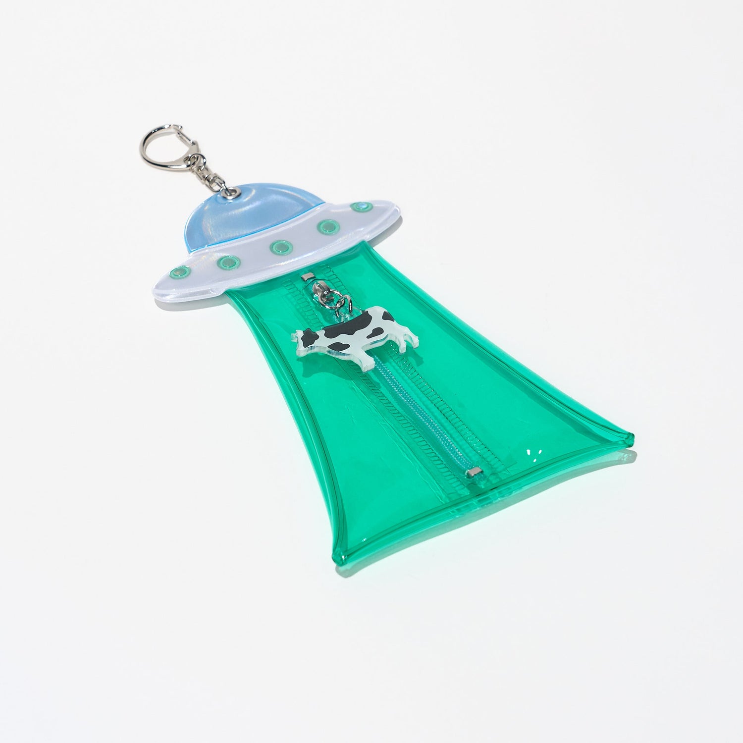 The Unidentified Flying Flat Pouch by Sun-Star features a playful UFO theme where your favorite character gets abducted by an unidentified flying object. The UFO element is a reflective surface that shines with a mysterious glow when it catches light, adding visual interest to this functional pouch.