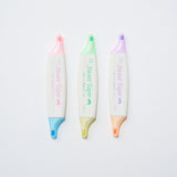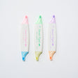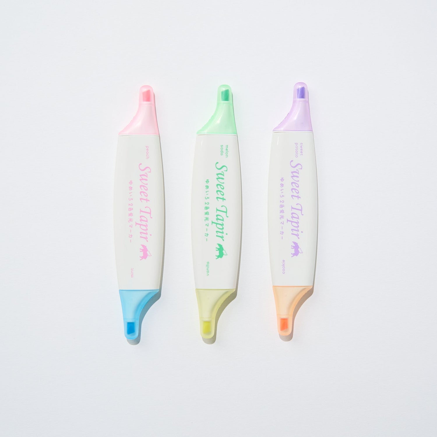 This dual-ended highlighter brings delight to note-taking with gently curved, flat bodies that rest comfortably in hand, dreamy pastel tones that keep text legible, and whimsical scents like peach, mint, melon soda, vanilla, sweet potato, and cookie—inviting a moment of sensory delight while highlighting.